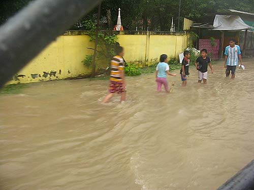 Вот такое наводнение нас накрыло на острове Самуи. Фото сделаны на 4 день непрекращающихся ливней. Самолеты не летают, паромы не ходят. Остров отрезан от материка. Интернета нет, с трудом пробились в "Биг-С" закупили продуктов, зашли в интернет, благо взяли с собой ноутбук. Вадик очень хотел покататься на водном мотоцикле. Природа предоставила ему такой шанс! Дороги все затопило, пробивались к дому по "водной глади".