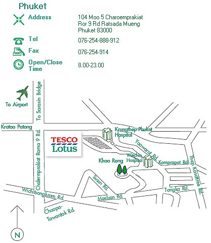В гипермаркете расположились: боулинг, кинотеатр, детский игровой центр, караоке, фуд-корт (тайская едальня), рестораны, кафе, парикмахерская, аптеки, магазины по продаже косметики, книг, одежды, галантерии, обуви, CD, ювелирных изделий. Несколько фирменных магазинчиков по продаже мобильных телефонов порадуют Вас ценами. В Tesco Lotus разместились такие бренды как магазин для дома Home Pro, рестораны Fuji и МК, ресторан быстрого питания KFC, кафе-пекарни Aunti Anne’s, Dunkin’ Donuts и S&P Bakery, кафе-мороженница Swensens.