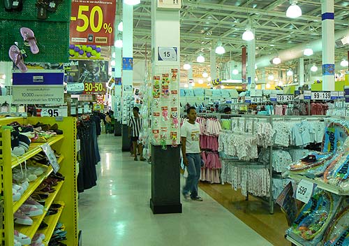 Непосредственно в самом Tesco Lotus продаются как продукты питания так и промышленные товары. Очень большой ассортимент продуктов питания, в принципе там есть всё, я думаю, перечислять не имеет смысла. Непродовольственные товары также представлены полностью, разве что от нашего Ашана отличается