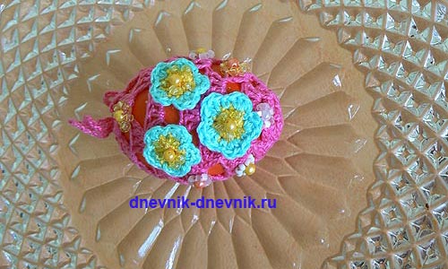 К Пасхе связала "одёжку" для праздничных яиц. Цыплята и украшение для яиц связаны крючком в виде "мешочка" в который упаковывается вареное яичко и завязывается веревочкой. Как детям, так и взрослым такое украшение понравилось.