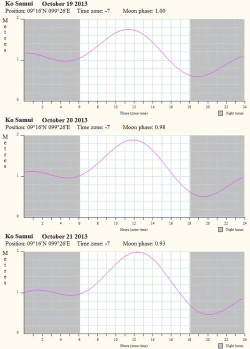 Морские приливы и отливы на о. Самуи с 19 по 21 октября 2013