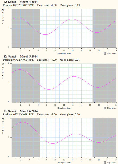 Графики приливов-отливов на 13-15 марта 2014 года. Таиланд.