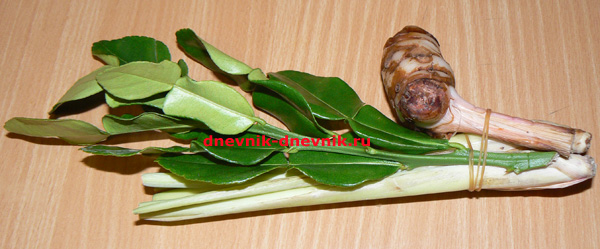лист кафрского лайма, лимонная трава или лемонграсс, калангал (галанга, калган) |